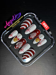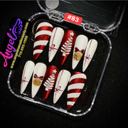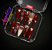 Angelina Handmade Custom Press-On Nails #060-#089 Christmas Red Glitter, Snowflake Holiday Design, Winter Press-On Nail Set