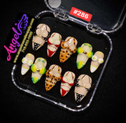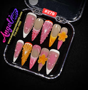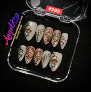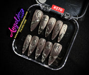 Discover our exclusive collection of handmade press-on nails, where artistry meets style. Each set is carefully designed with unique patterns, from delicate florals and chic marble effects to bold charms, ombré gradients, and shimmering accents. With a variety of nail shapes and lengths – stiletto, coffin, almond, or square – you can easily find a style that suits your mood and personality.