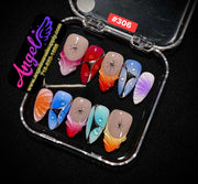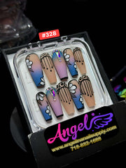 Discover our exclusive collection of handmade press-on nails, where artistry meets style. Each set is carefully designed with unique patterns, from delicate florals and chic marble effects to bold charms, ombré gradients, and shimmering accents. With a variety of nail shapes and lengths – stiletto, coffin, almond, or square – you can easily find a style that suits your mood and personality.