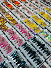 Discover our exclusive collection of handmade press-on nails, where artistry meets style. Each set is carefully designed with unique patterns, from delicate florals and chic marble effects to bold charms, ombré gradients, and shimmering accents. With a variety of nail shapes and lengths – stiletto, coffin, almond, or square – you can easily find a style that suits your mood and personality.